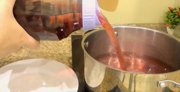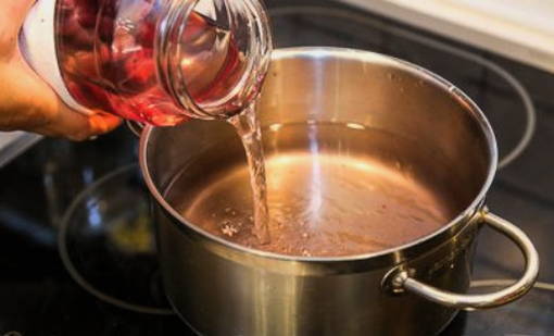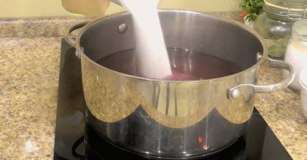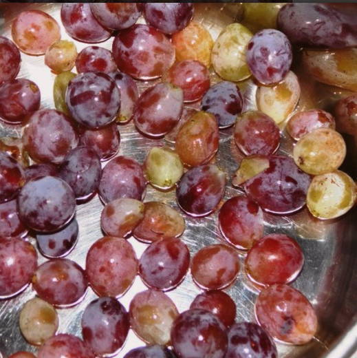- Giet heet water in een pan met druiven en laat op laag vuur koken.