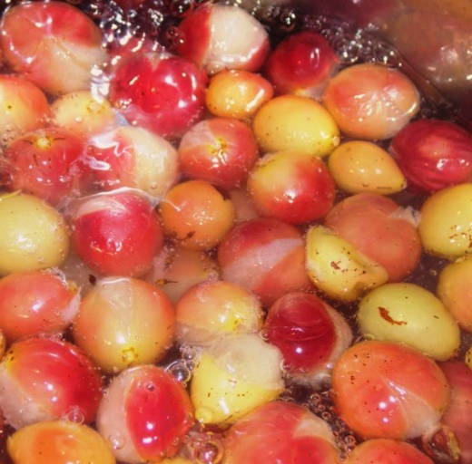 - We koken de druiven 10 minuten vanaf het moment dat de vloeistof kookt, tijdens het kookproces barst de druivenschil.