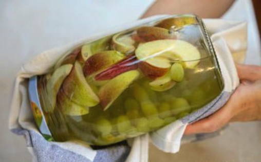 Vitaminebom in je keuken. Dit recept ligt in de kracht van velen, vooral als je de eigenaar bent van zelfgemaakte druiven en zelfgemaakte appels. Niet alleen een ongelooflijk aangename smaak van compote, maar ook een grote hoeveelheid fruit voor voedingswaarde, die zo ontbreekt in het winterseizoen. Verwen uzelf en uw dierbaren.