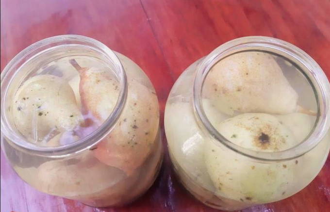 - Spoel en droog alle ingrediënten grondig. Voor snelheid kunnen peren worden afgeveegd met een handdoek. Tegelijkertijd steriliseren we de potten.