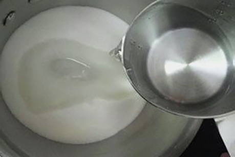 - Giet water in een pan en voeg suiker toe, breng de zoete siroop aan de kook, kook 5 minuten en haal van het vuur.
