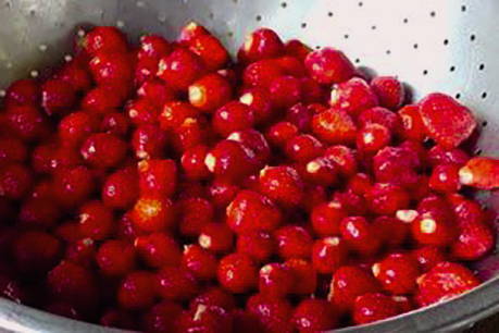 - Sorteer de aardbeien en was ze.