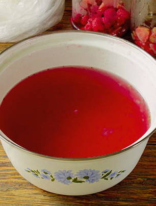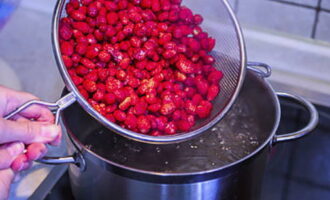 - Doe de bessen in een kom, dek af met hete siroop, dek af en laat 3-4 uur staan.
