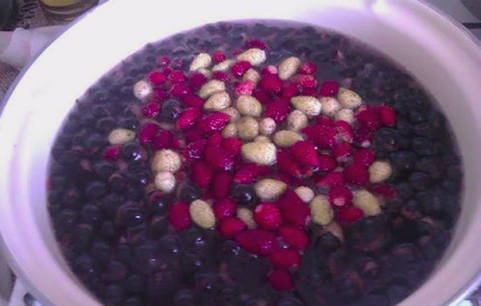 - Giet water in een pan, breng het aan de kook en voeg zwarte bessen toe.