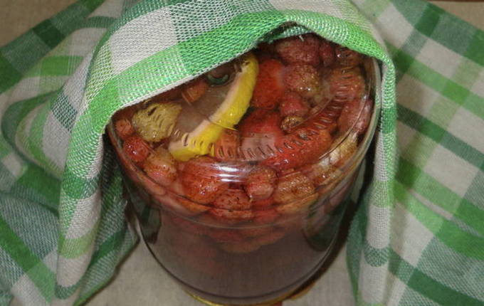 In de winter kan niemand een heerlijke en aromatische zelfgemaakte compote weigeren. Een prachtige combinatie van wilde aardbeien en tuinbessen in de drank zal u verrassen met zijn zoetzure rijke smaak.