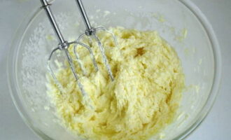 - Klop eieren met suiker, voeg zachte margarine en gezeefde bloem toe.