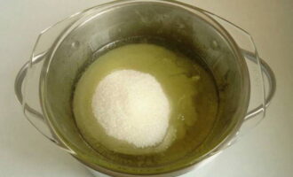 - Koude dooiers en zure room, evenals suiker worden aan de massa toegevoegd. Alles goed mengen.