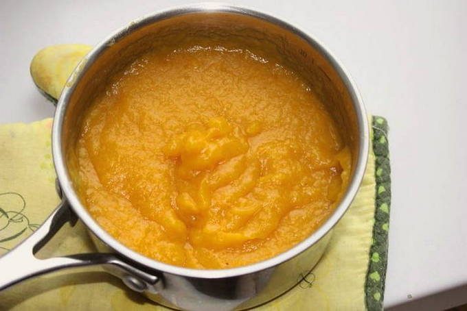 - Hak gedroogde abrikozen gedrenkt in heet water in aardappelpuree, meng met slagroom.