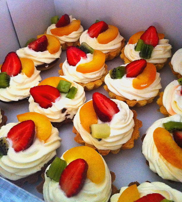Om zo'n dessert te bereiden, neem je je favoriete verse fruit of bessen en zachte gedroogde abrikozen met room. De traktatie is mals, fris en niet te hoog in calorieën. Deze manden kunnen worden geserveerd met warme dranken of met verfrissende cocktails.