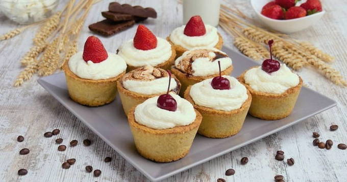 Huisgemaakte zandkoekmandjes met kwarkroom