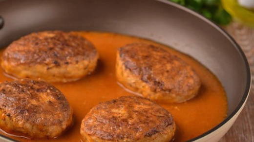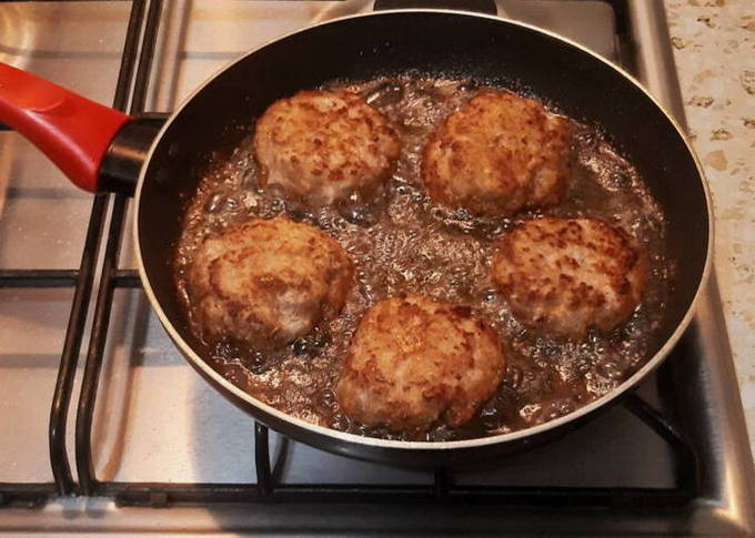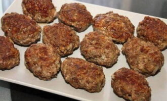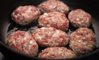 - We boetseren ronde schnitzels uit de vleesmassa en bakken ze in plantaardige olie tot ze helder goudbruin zijn.