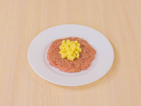 - Ontdooi het gehakt en leg het in een diep bord.