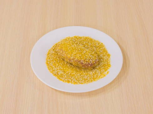 - We vullen de ingrediënten aan met paneermeel.