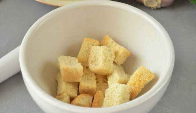 - Week eerst de benodigde hoeveelheid brood in melk. Verwijder de korst van het brood en laat alleen het vruchtvlees over. We doen het in een diep bord en vullen het met melk, laten het 10-15 minuten staan.
