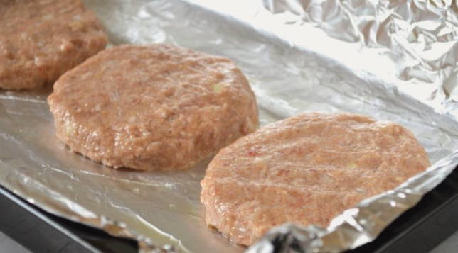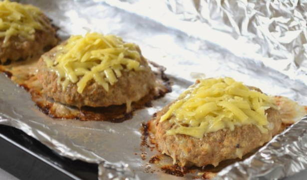 - We nemen een bakplaat en bekleden deze met folie, vet deze in met olie. Vorm middelgrote schnitzels en verdeel ze op korte afstand van elkaar op folie. We vertrekken voor 10-12 minuten. We halen de schnitzels uit de oven als ze goudbruin zijn.