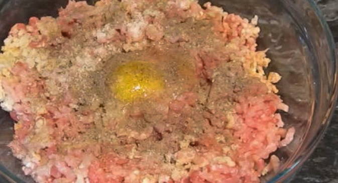 - Bestrooi het gehakt met zout en kruiden.