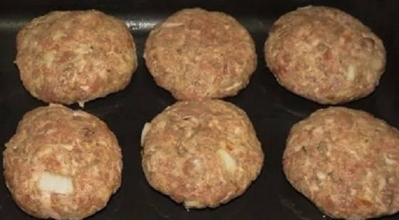 - Zet de oven 180 graden aan en verwarm hem voor. Dan beginnen we schnitzels te maken: we nemen een stuk middelgroot gehakt en maken ovale vormpjes. We verplaatsen ze van de ene hand naar de andere om ze zachtheid en elasticiteit te geven.