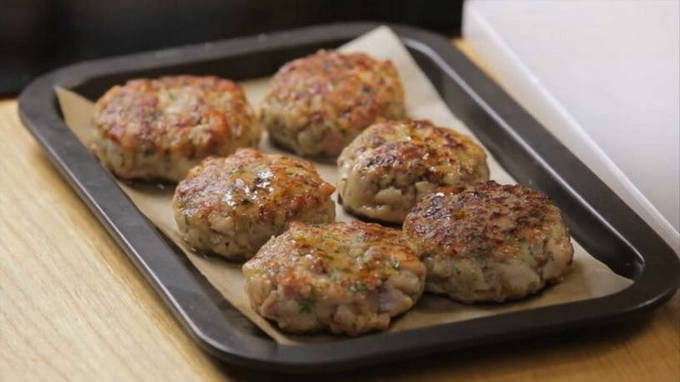 - We halen de bakplaat uit de oven en plaatsen deze op het werkoppervlak. We zetten de oven aan om op te warmen en stellen de temperatuur in op 180 graden. Leg bakpapier op een bakplaat en vet deze licht in met zonnebloemolie. Vorm middelgrote schnitzels en leg ze op een bakplaat. We verhogen de temperatuur tot 200 graden en zetten een bakplaat met schnitzels in de oven. We laten 30 minuten sudderen.
