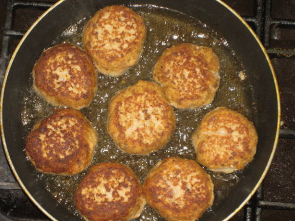 Hoe roze zalm viskoekjes in een pan bakken?