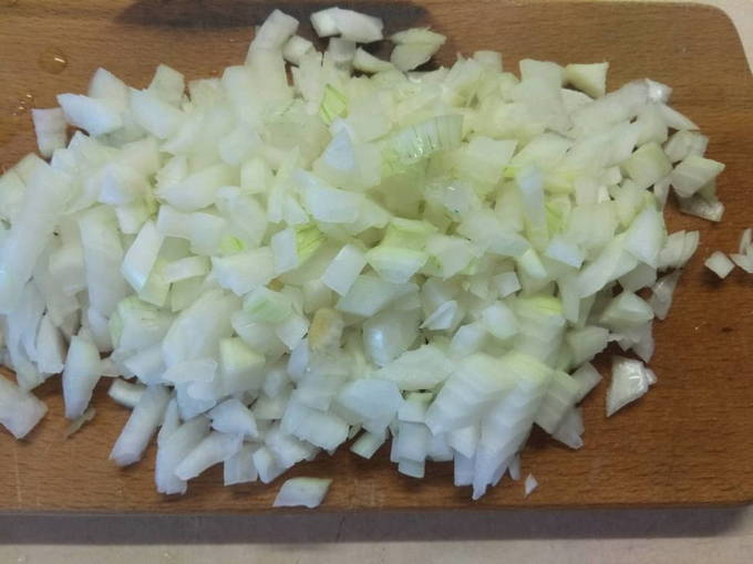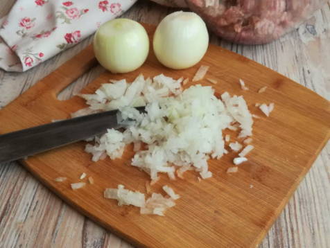 - Spoel de ui in water. Schil het af. Hak de groente fijn. We wassen ook de peterselie en dille. We verwijderen overtollig vocht van hen. Snijd de greens in kleine stukjes. Voeg de ui toe aan het gehakt en meng het. Giet vervolgens de gehakte greens erbij en roer alles opnieuw.