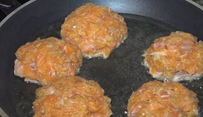 - Stapsgewijs recept voor het maken van gehakte roze zalmkoteletten