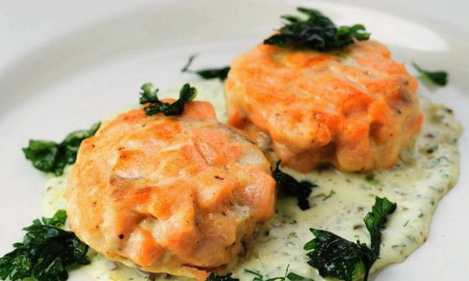- Hoe roze zalm viskoekjes in een pan bakken?