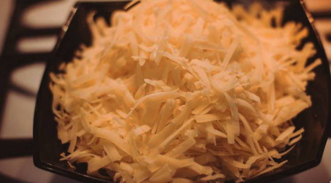 - Wrijf vervolgens de kaas op een grove rasp. Wij kiezen welke kaas u het lekkerst vindt.