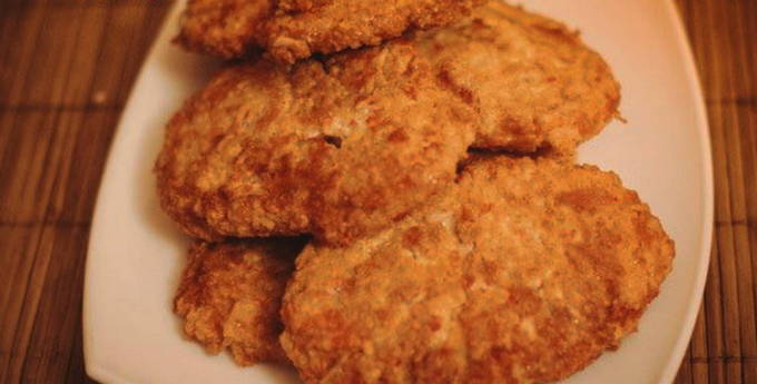 - Giet paneermeel in een apart bord. Laten we beginnen met het vormen van koteletten. Om dit te doen, bevochtigen we onze handen met water en vormen we schnitzels van ongeveer dezelfde grootte. Rol elke kotelet in paneermeel en leg op een bakplaat, die we vooraf afdekken met perkament of folie. Verwarm de oven voor op 180 graden, zet de bakplaat in de oven en bak 20 minuten. Draai de schnitzels om de 10 minuten met een vork zodat ze aan elke kant gelijkmatig gaar kunnen worden. Draai de schnitzels voorzichtig om, want ze zijn erg mals.