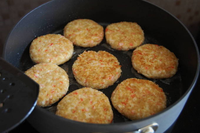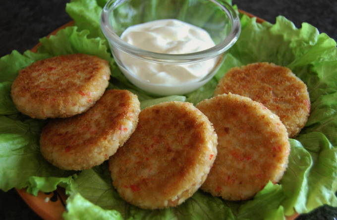 Stapsgewijs recept voor het maken van krabkoteletten zonder kaas toe te voegen