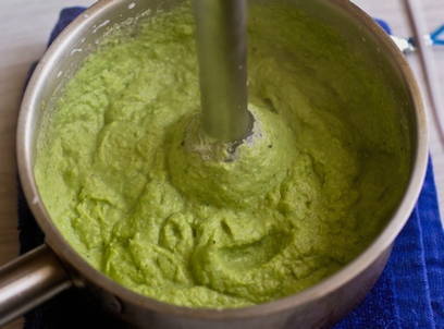 - Nadat alle groenten gaar zijn, maken we aardappelpuree. Maal alle afgewerkte groenten voorzichtig met een blender tot een gladde massa. Voeg room toe en meng alles opnieuw goed. Voeg naar smaak peper en zout toe.