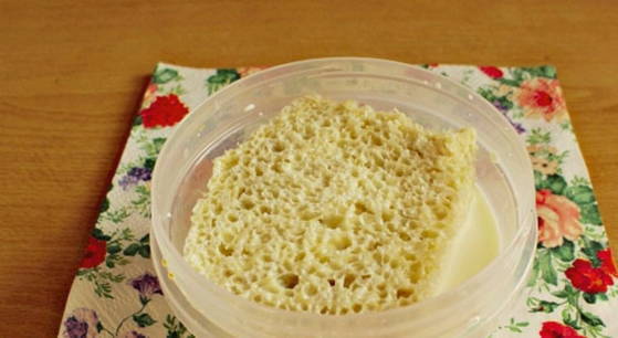 - Week het brood 5-7 minuten in melk. kneed dan het brood met je handen.