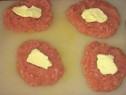 - Vorm kleine cakes van gehakt, leg wat kaas in het midden.