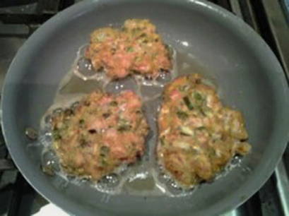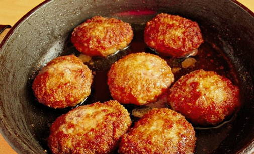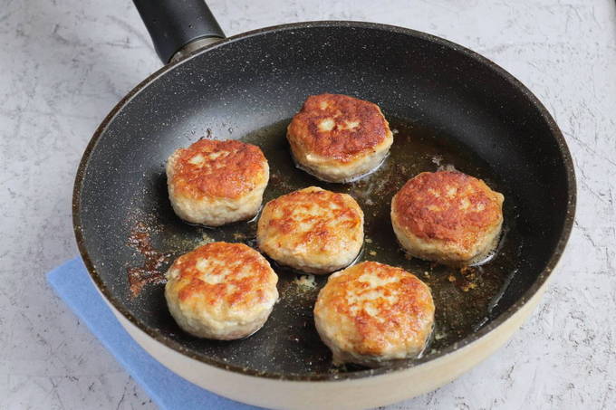 - Giet plantaardige olie in een voorverwarmde pan. Vorm ronde pasteitjes en leg ze op hete olie.