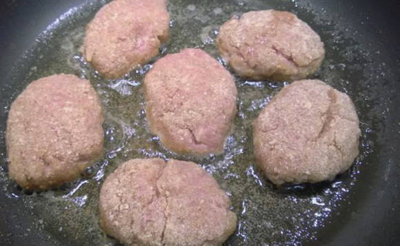 - Bak de pasteitjes een paar minuten aan alle kanten in een grote hoeveelheid plantaardige olie. Leg de pasteitjes vervolgens op een bakplaat.
