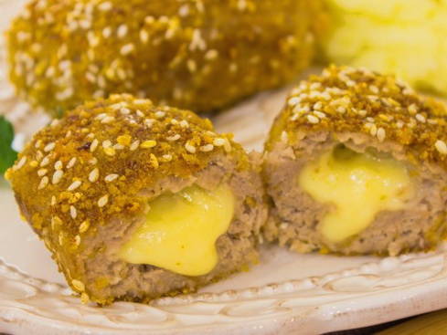 - Wikkel de kaasvulling in het gehakt en vorm de pasteitjes.