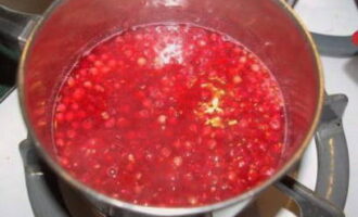 Bedek de gehakte bessen met suiker en meng goed. Laat de massa op een warme plaats staan tot de suiker volledig is opgelost - gedurende enkele uren en roer dan opnieuw.