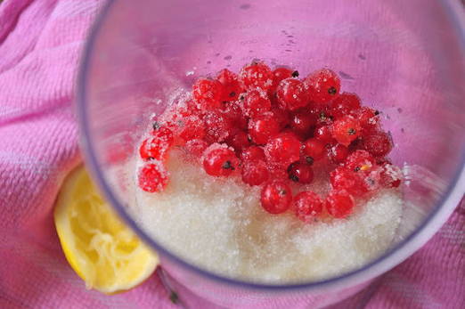 Rode aalbessen met suiker om in de vriezer te bewaren