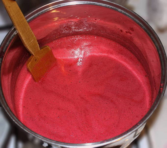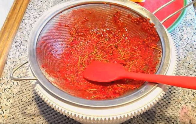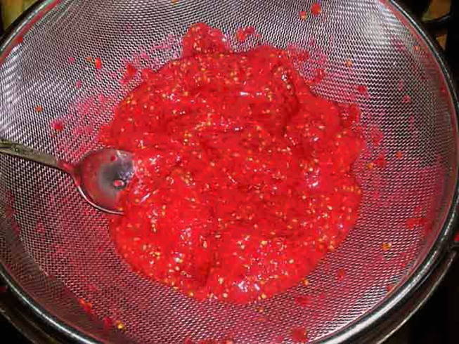 - Wrijf de bessen door een zeef om de zaden en de schil te verwijderen.