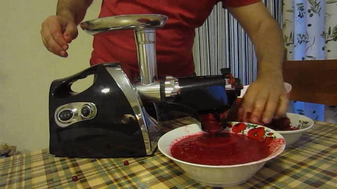 - Maal de bessen met een keukenmachine, vleesmolen of blender en wrijf de resulterende massa door een zeef.