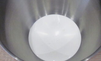 - Begin de ingrediënten samen te kloppen. We beginnen bij lage toeren en voeren geleidelijk de snelheid op. De opkloptijd is ongeveer vier tot vijf minuten. Zodra het merkbaar wordt dat de crème homogeen, glad, dicht en dik is geworden, stoppen we met werken om de structuur van de massa niet te verstoren.