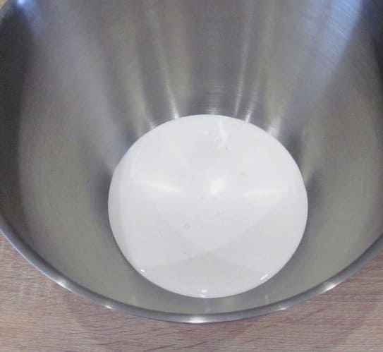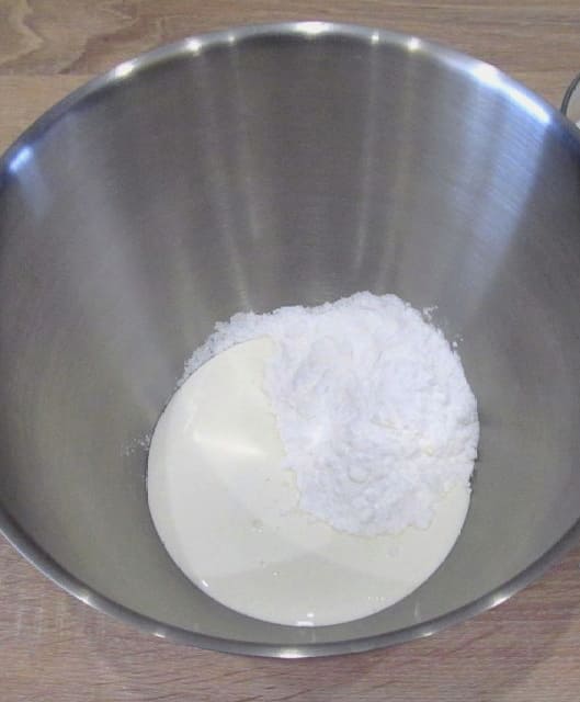Giet de aangegeven hoeveelheid poedersuiker in de room.