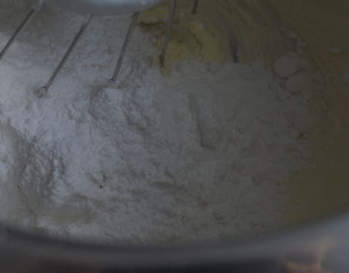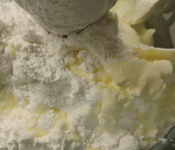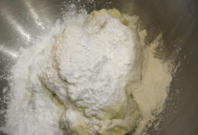 - Giet de poedersuiker erover en begin op lage snelheid te kloppen, waarbij de snelheid geleidelijk wordt verhoogd. In dit stadium moet u een homogene gladde massa en een lichte bleekheid bereiken ten opzichte van de oorspronkelijke kleur. Het duurt ongeveer zeven tot negen minuten, afhankelijk van het vermogen van de mixer. Het wordt ten zeerste afgeraden om poedersuiker te vervangen door suiker, omdat het vrij moeilijk is om volledige oplossing van suikerkristallen te bereiken.