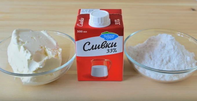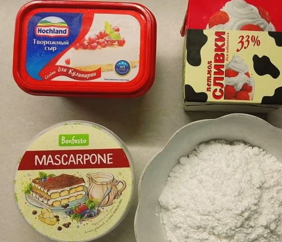 - Voordat u de room maakt, moet u de roomkaas en room goed in de koelkast laten afkoelen. Van producten op kamertemperatuur zal de gewenste consistentie van de massa niet werken. Wij kiezen voor natuurkaas zonder smaak- en geurstoffen. In geen geval kunnen we poedersuiker vervangen door suiker - dit zal de tijd voor het kloppen en oplossen van de suikerkristallen aanzienlijk verlengen, wat een onverwacht resultaat kan geven.