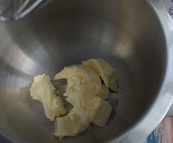 - We halen de boter van te voren uit de koelkast zodat deze de tijd heeft om goed zacht te worden tegen de tijd dat de roomkaas klaar is. Doe het in een kom om te kloppen en ga aan de slag met een mixer op hoge snelheid om een gladde, zachte massa te krijgen.