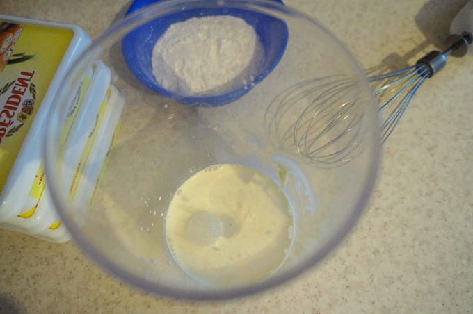 Giet koude room in een kom om te kloppen.