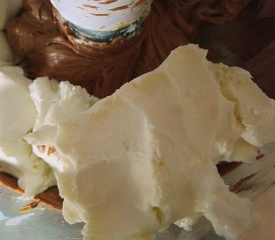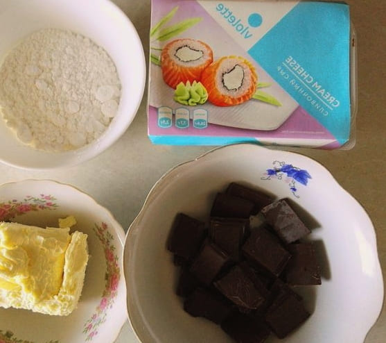 - We beginnen de bereiding van de crème met het bereiden van de ingrediënten. We halen de boter vooraf uit de koelkast en laten deze goed zacht worden. Integendeel, we koelen de roomkaas in de koelkast tot hij helemaal koud is. Breek de chocolade in kleine stukjes.