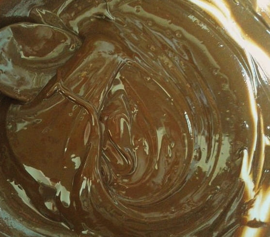 - Doe de stukjes chocolade in een kom en magnetron. We smelten de chocolade in een intervalmodus gedurende vijf tot tien seconden, waarbij we de massa telkens goed roeren. Wanneer de gesmolten chocolade homogeen wordt, stop dan met verwarmen. Als je twijfelt over het werken met een magnetron, plaats je de schaal met chocolade gewoon in het waterbad. Zo heb je het smeltproces volledig onder controle.