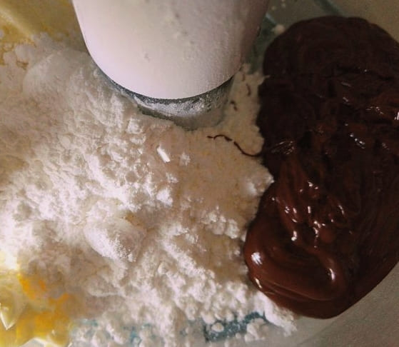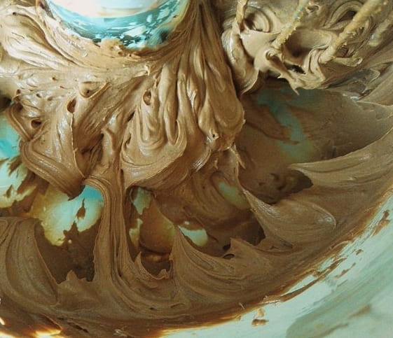 - Doe zachte boter, poedersuiker en gesmolten chocolade in een kom om te kloppen. Begin met een mixer op lage snelheid te kloppen en verhoog geleidelijk de snelheid.