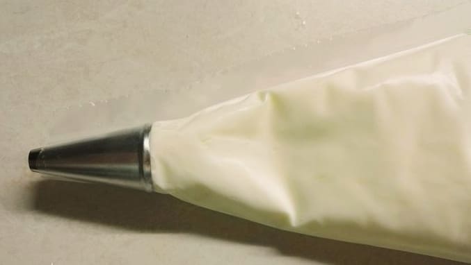- Plaats de bereide room in de koelkast en laat het twintig tot dertig minuten staan om af te koelen. De massa hoeft niet te worden gestabiliseerd - u kunt er direct na afkoeling mee aan de slag. Om het werken met de crème gemakkelijk te maken, kun je een spuitzak gebruiken met de nodige opzetstukken. Het is zo gemakkelijk om de crème te doseren en gelijkmatig in cirkels aan te brengen om de cakes te sandwichen, om nog maar te zwijgen van het decoreren van het oppervlak.