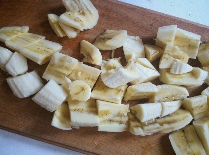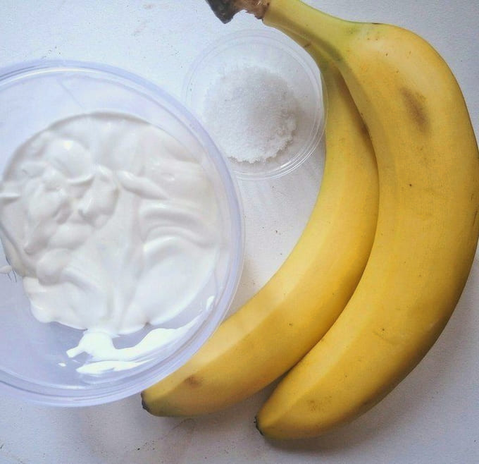 - We zullen de nodige producten klaarmaken. Giet de zure room in een diepe comfortabele kom. Schil de bananen.